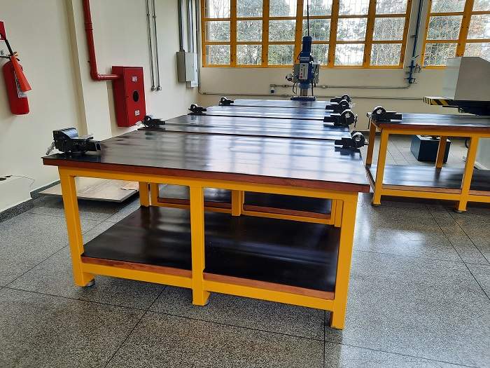Fabricação de bancadas para a Universidade tecnológica Federal do Parana , Campus de Ponta grossa. Onde foram fabricadas 9 bancadas com tampo de madeira com duas morsas cadas bancada, 1x Bancada para armazenamento de tubos de 5 metros de comprimento e 1X bancada para armazenamento de chapas. Conforme especificações a aprovação da universidade.