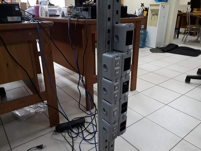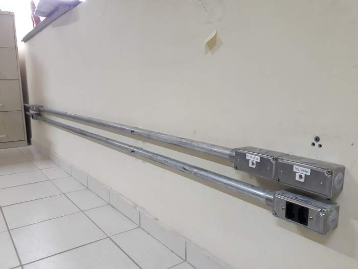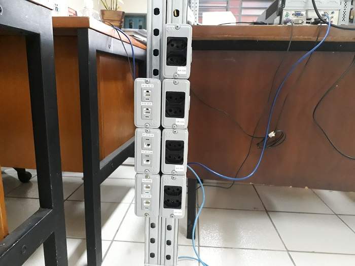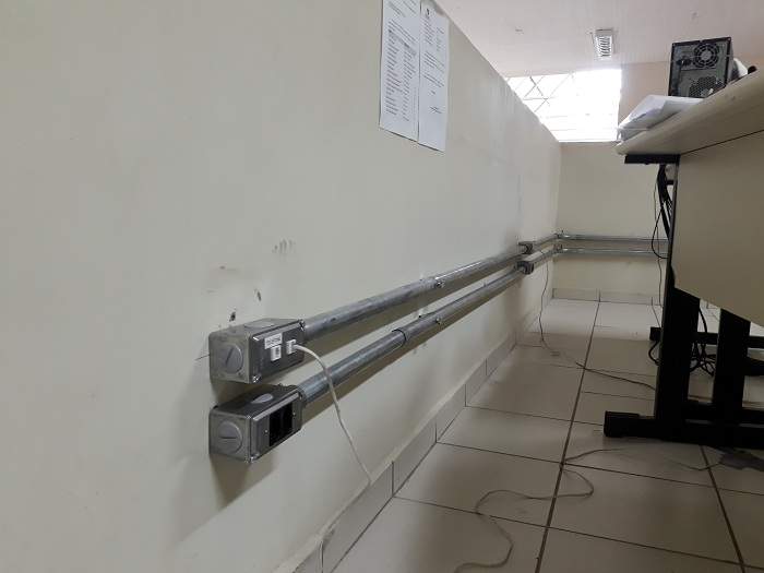 Infraestrutura realizada no Núcleo Regional da Educação em Ponta Grossa. Serviços realizados: Instalação de 20 pontos de rede lógica, categoria 5e, sendo certificados os pontos com equiapamento fluke. Instalação de 15 pontos de rede elétrica, distribuídos em 4 circuitos; As descidas para as ilhas de mesas do escritório, foi optado por perfilados, e pontos nas peredes foram utilizados eletrodutos galvanizados.